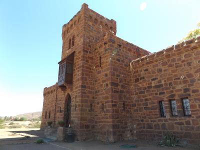 Wir haben uns am Montag Duwisib Castle angeschaut. Das ist ungefähr 80km entfernt. Wir konnten leider erst etwas später los, da wir warten mussten bis die Spontangäste fertig gefrühstückt und bezahlt haben. Wir sind gegen 9.30Uhr los gefahren. Die komplette Straße war nicht geteert, wie so üblich für Namibia.